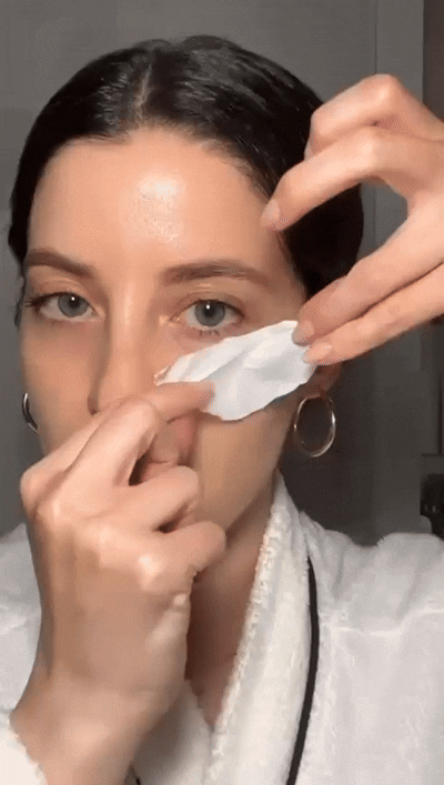 Rocía una pequeña cantidad de bruma o sérum para activar el parche y permitir que se disuelva. Déjalo actuar 15–20 minutos mientras hidrata y reafirma la piel.